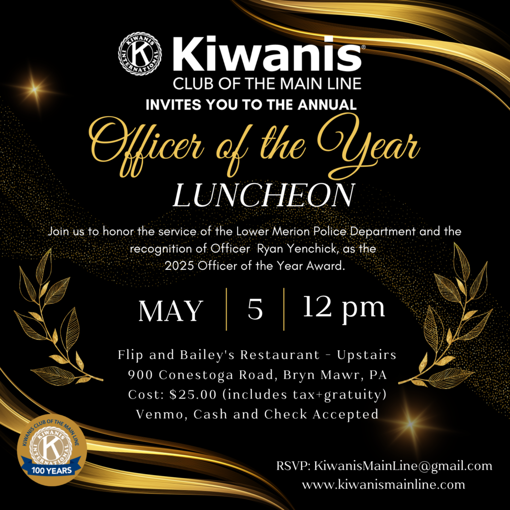 May 7, 2025 – Officer of the Year Luncheon will be held honoring Officer John DeVore as the 2024 Officer of the Year recipient.